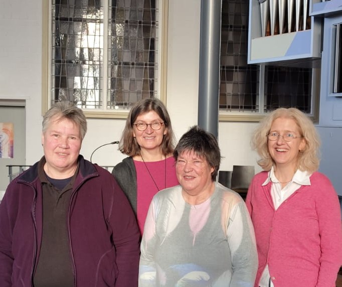 Gemeinsam mit vielen Ehrenamtlichen kümmern sich das Team der Angestellten und die Pastorin um das Gemeindeleben: v.l.n.r.: Rita Seegers, zuständig für die Außenanlagen, Susanne v. Stemm, Pastorin, Petra Ohlendorf, Küsterin und Reinigung, Tanja Rieger, Gemeindesekretärin.