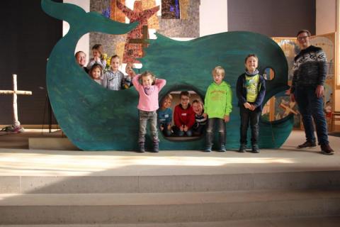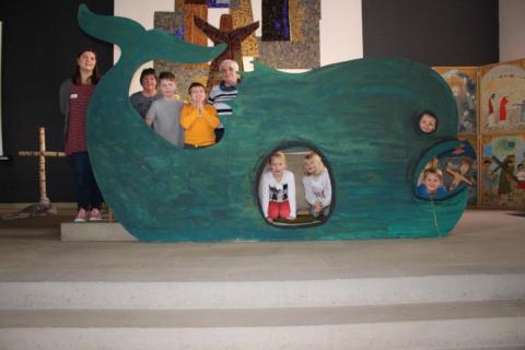 Ein tolles Wochenende im Bauch des Wals, mit Meißel und Raspel, selbst gebastelten Spielen ("Schnapp den Jona!" - ja, es heißt tatsächlich so!!!), bei Standbildern und Fotoshootings und mit viel Gemeinschaft, Beten und Singen, Erzählen und Hot Dogs für Vegetarier und Fleischfresser liegt hinter uns! Das erweiterte Kigo-Team hat alles gegeben. Wir sagen DANKE an die Johannes-Kirchengemeinde Neustadt, die uns diesen herrlichen Wal gestiftet hat, und an die Walfänger-Crew Seegers, die diesen dicken Fang für uns an Land gezogen hat.