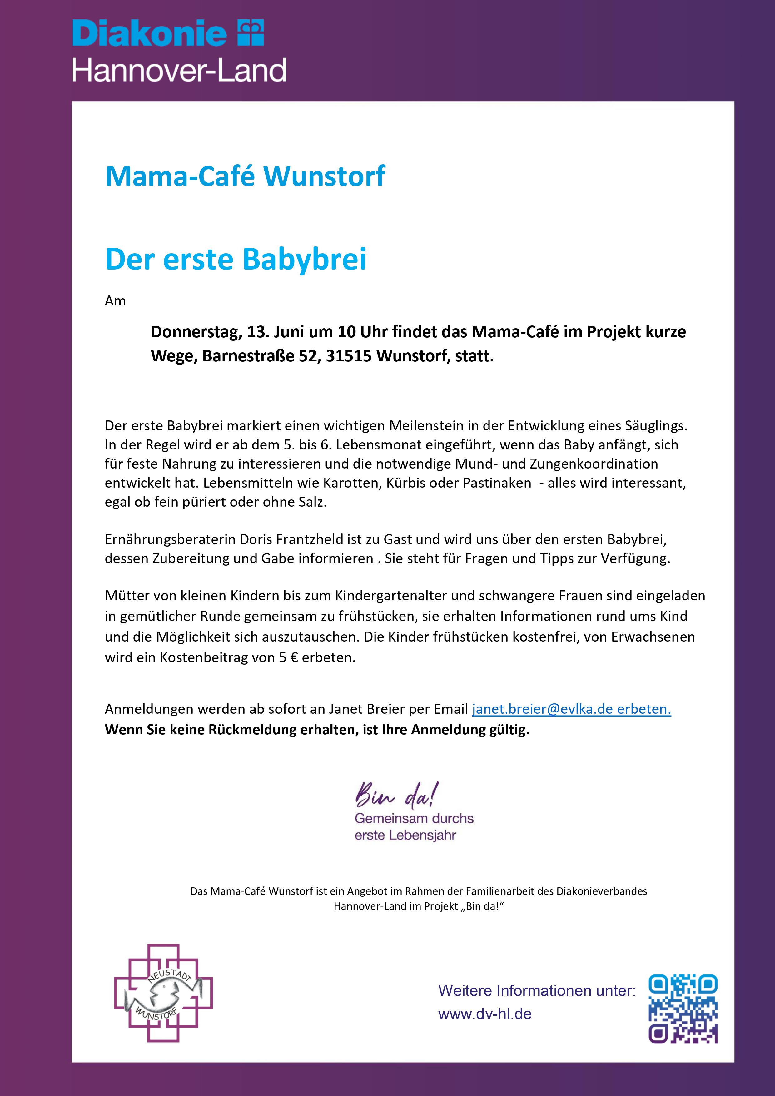 • Der erste Baby-Brei - offenes Mama-Café am 13. Juni, 10 Uhr